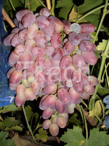 Сорт селекции: Период вегетации: 125-135 дней; Масса грозди: 0,7-1 кг; Вес ягоды: 10-15 грамм; Цвет: Розово-красный; Вкус: Гармоничный; Устойчивость к болезням: 2,5-3 балла; Морозоустойчивость: -23 оС |