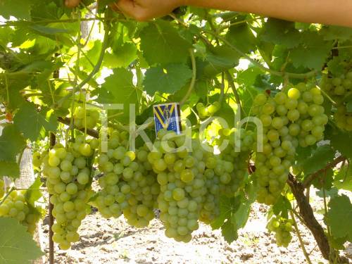 Сорт селекции: Период вегетации: 100-105 дней; Масса грозди: 0,5-0,7 кг; Вес ягоды: 6-8 грамм; Цвет: Янтарно-белый; Вкус: Мускатный; Устойчивость к болезням: 2,5-3 балла; Морозоустойчивость: -26 оС. |